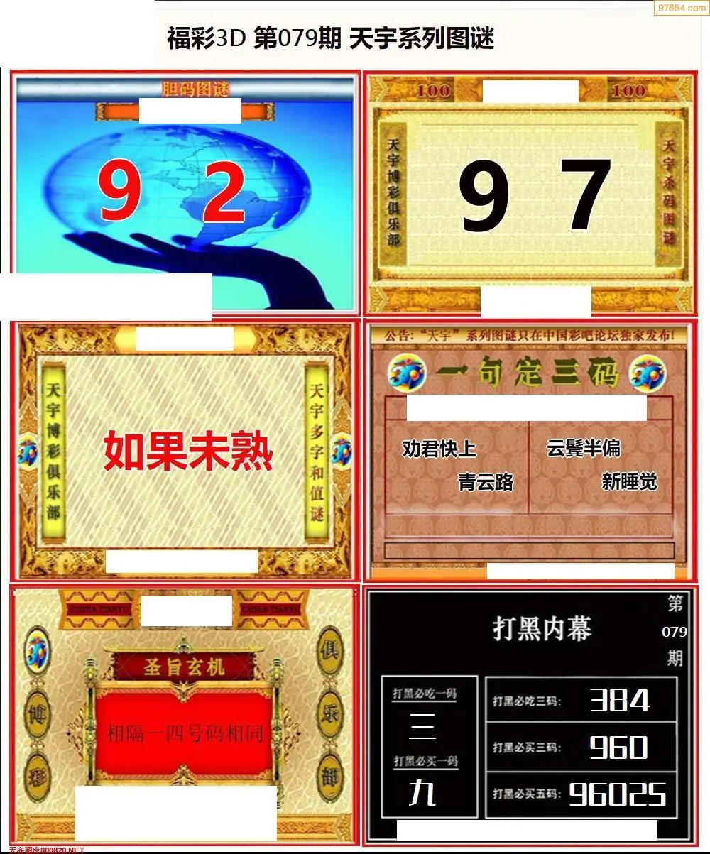 福彩3D079期天牛彩吧套图整合总汇