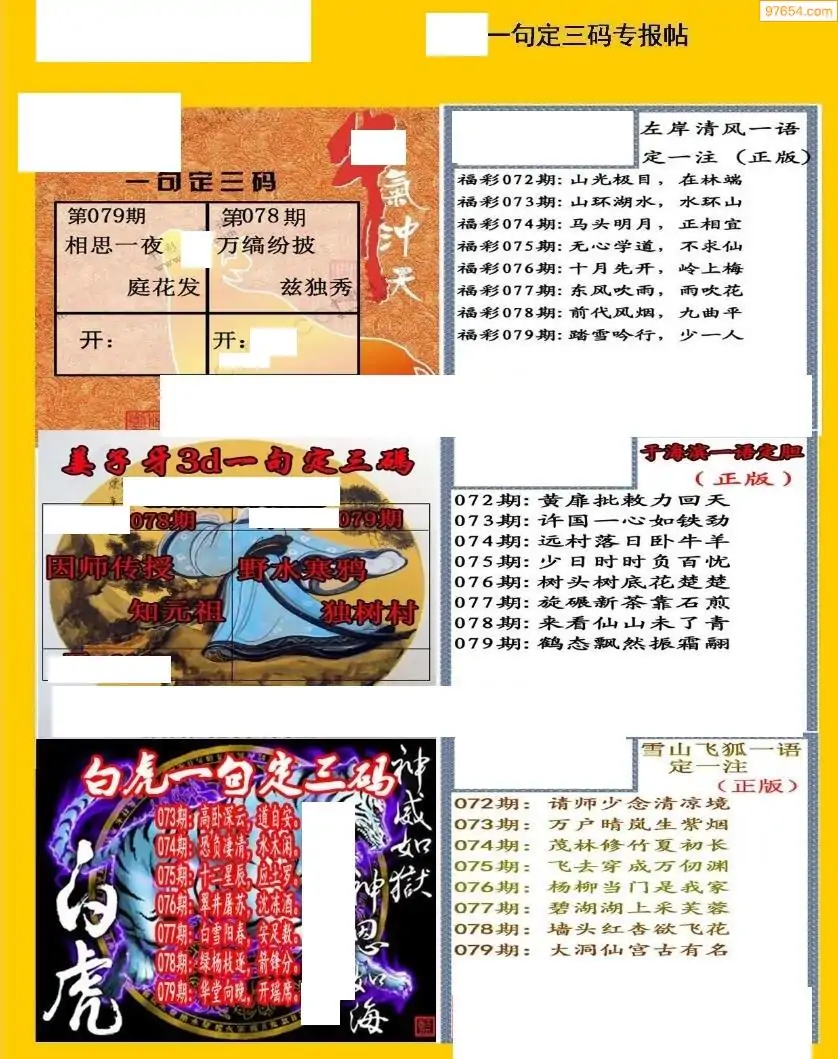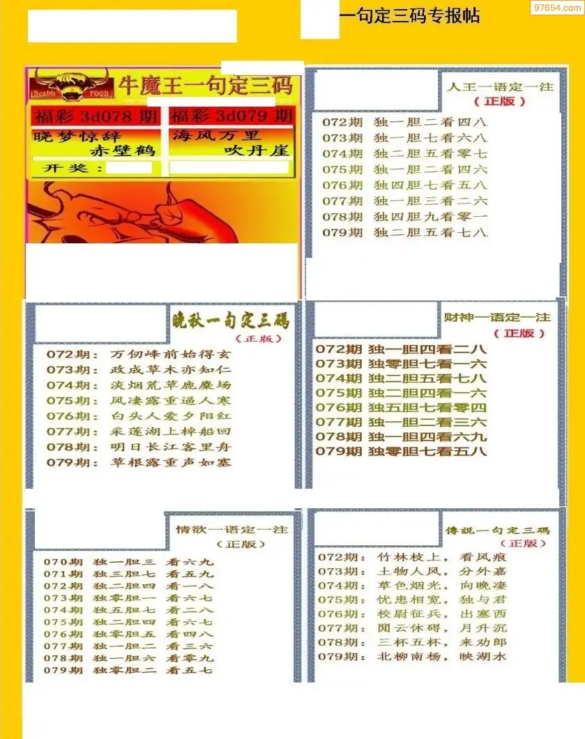 福彩3D079期天牛彩吧套图整合总汇