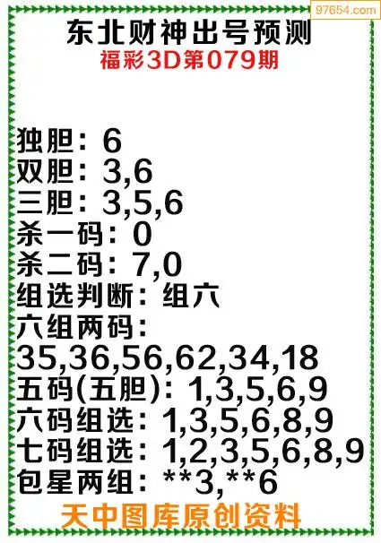 3d原创079期东北财神预测