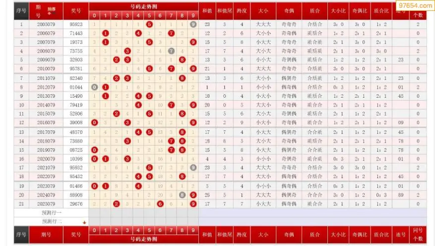 079期排列三历史号码对比图+数据走势分析