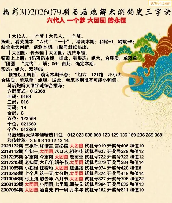 福彩3d26年079期瞬间解太湖字谜