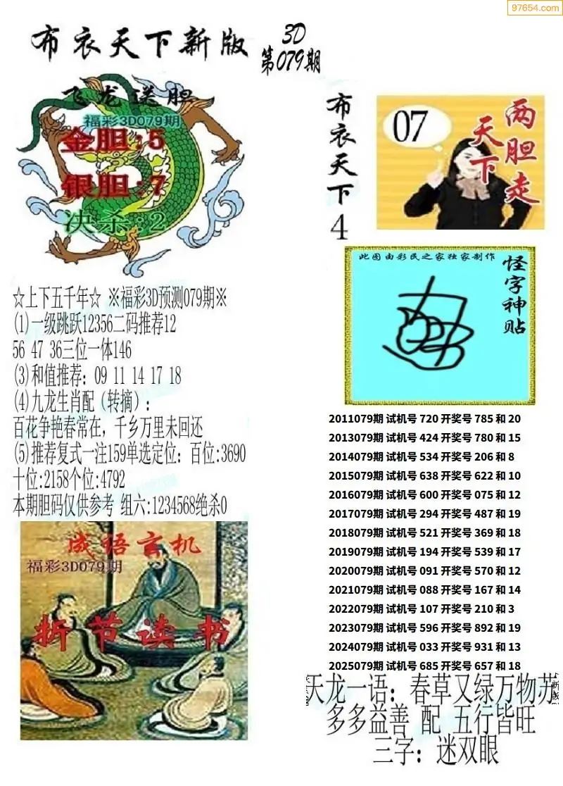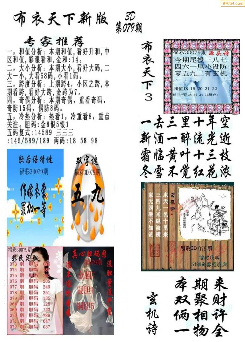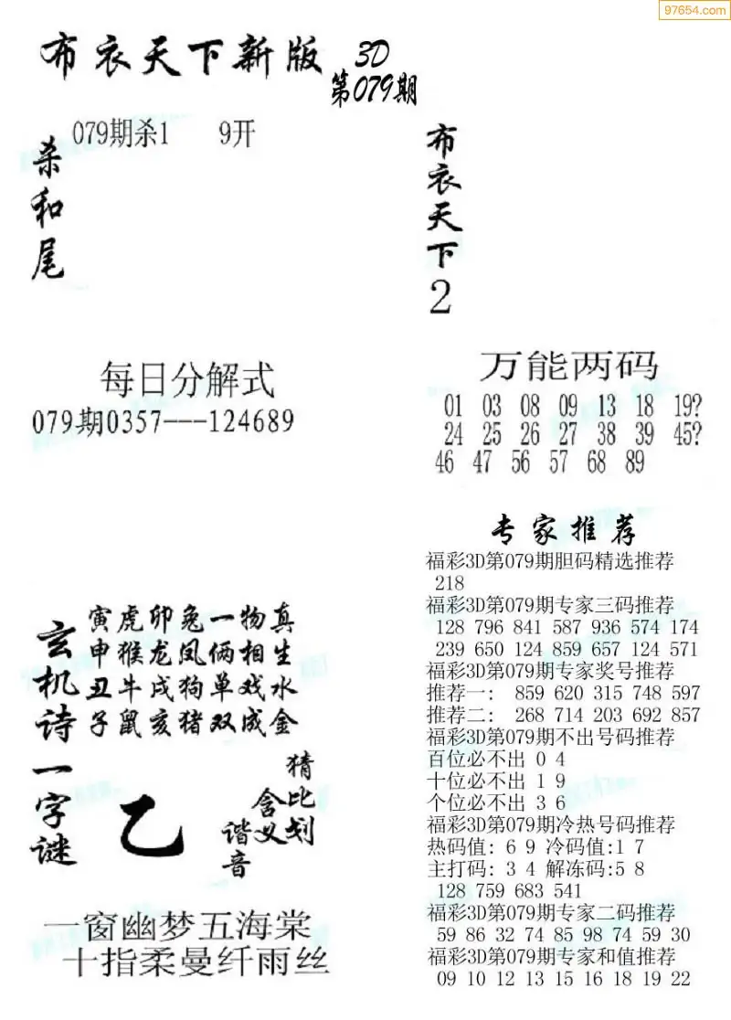福彩079期3d真精华布衣+布衣早报(转载)
