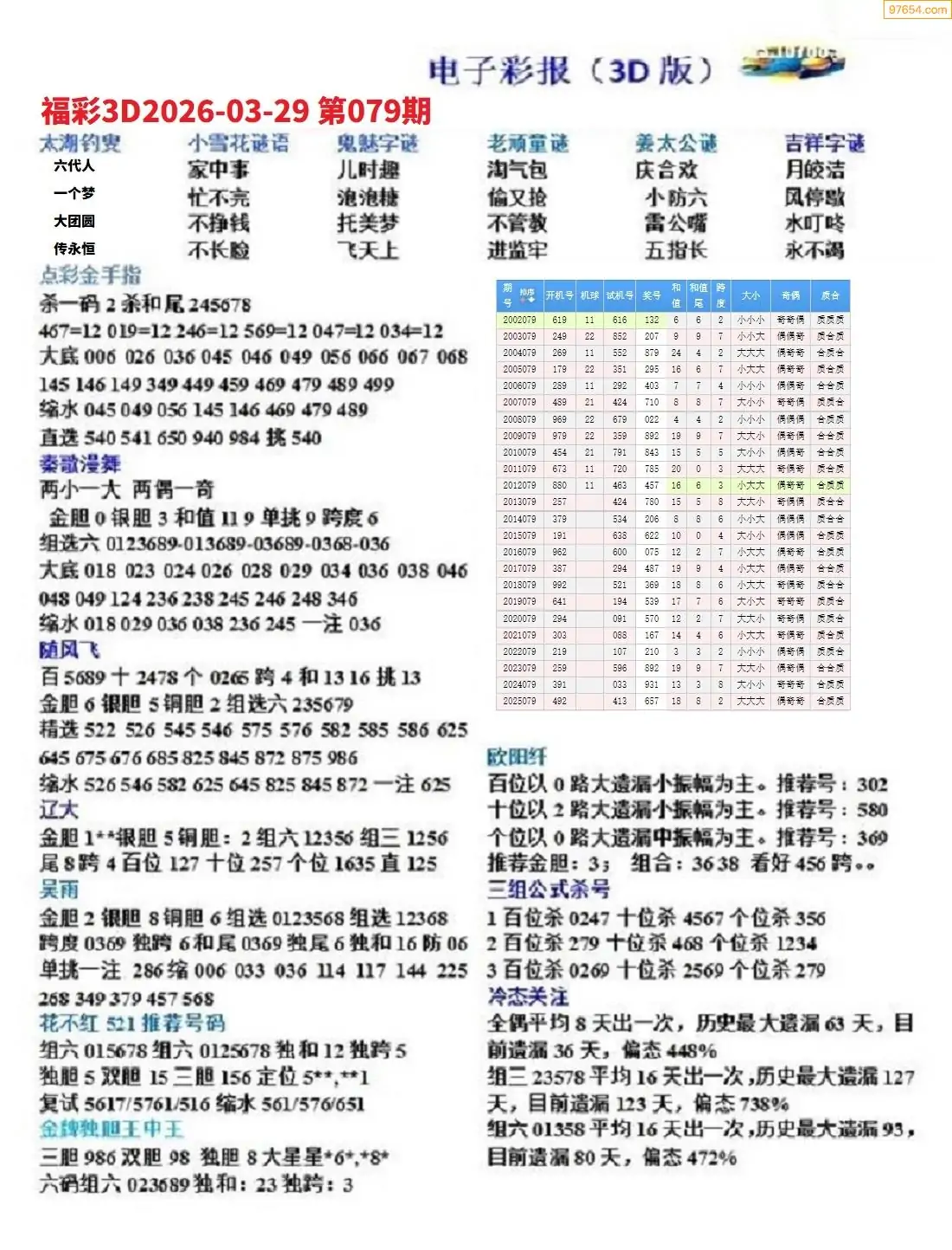 26年079期3D各板块资料整合汇总