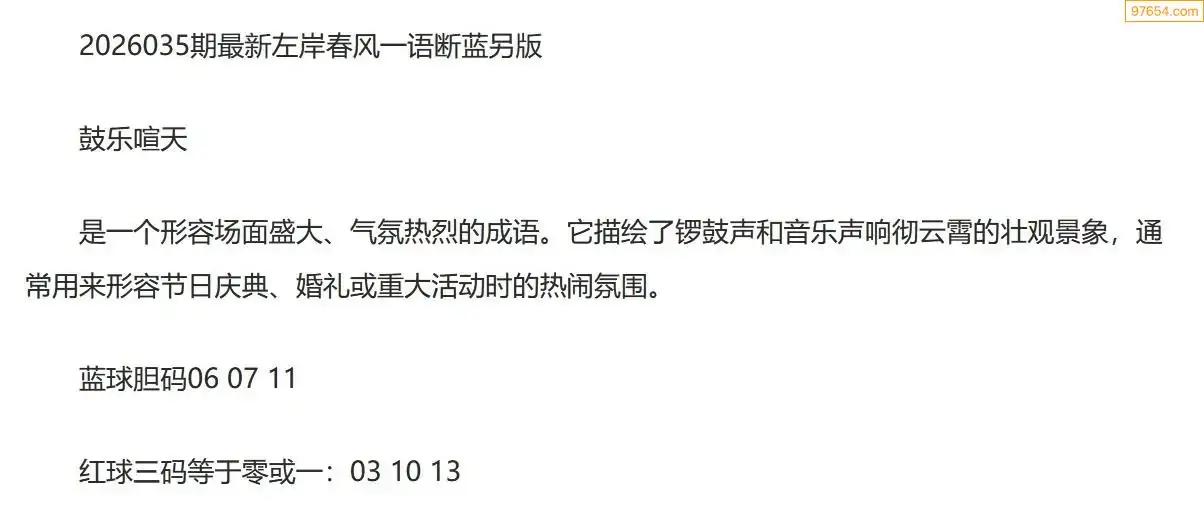 左岸春风另版双色球26年035期一语断蓝