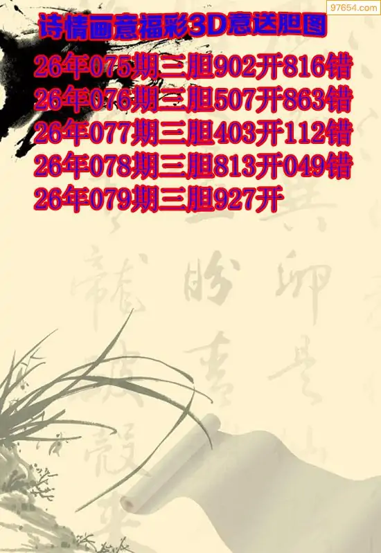 079期97654本站收集胆码出号预测