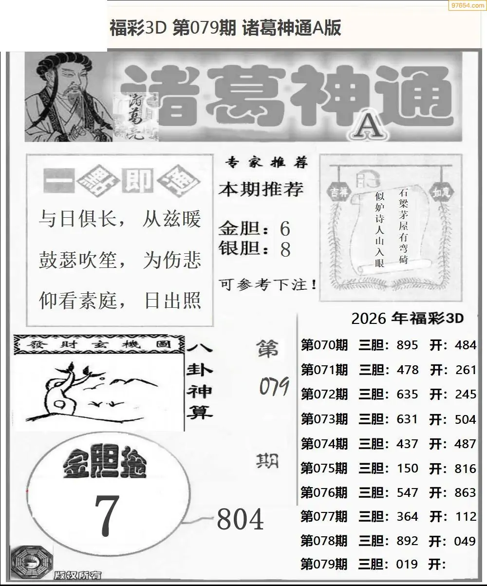 26079期福彩3D诸葛神通a
