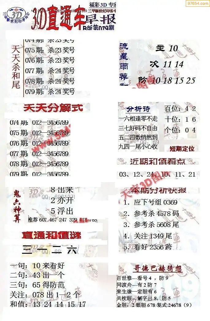 26年079期3D各板块资料整合汇总