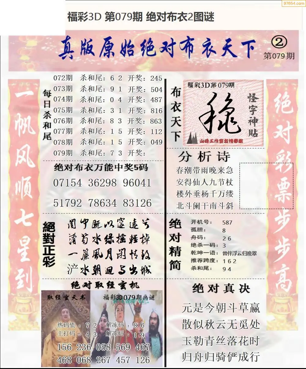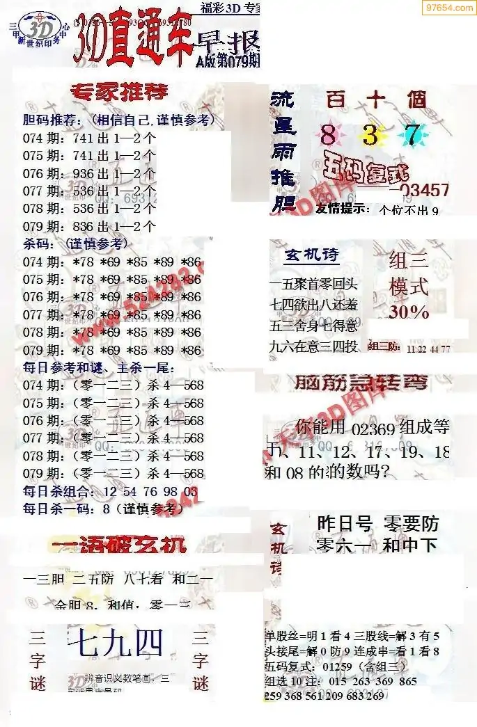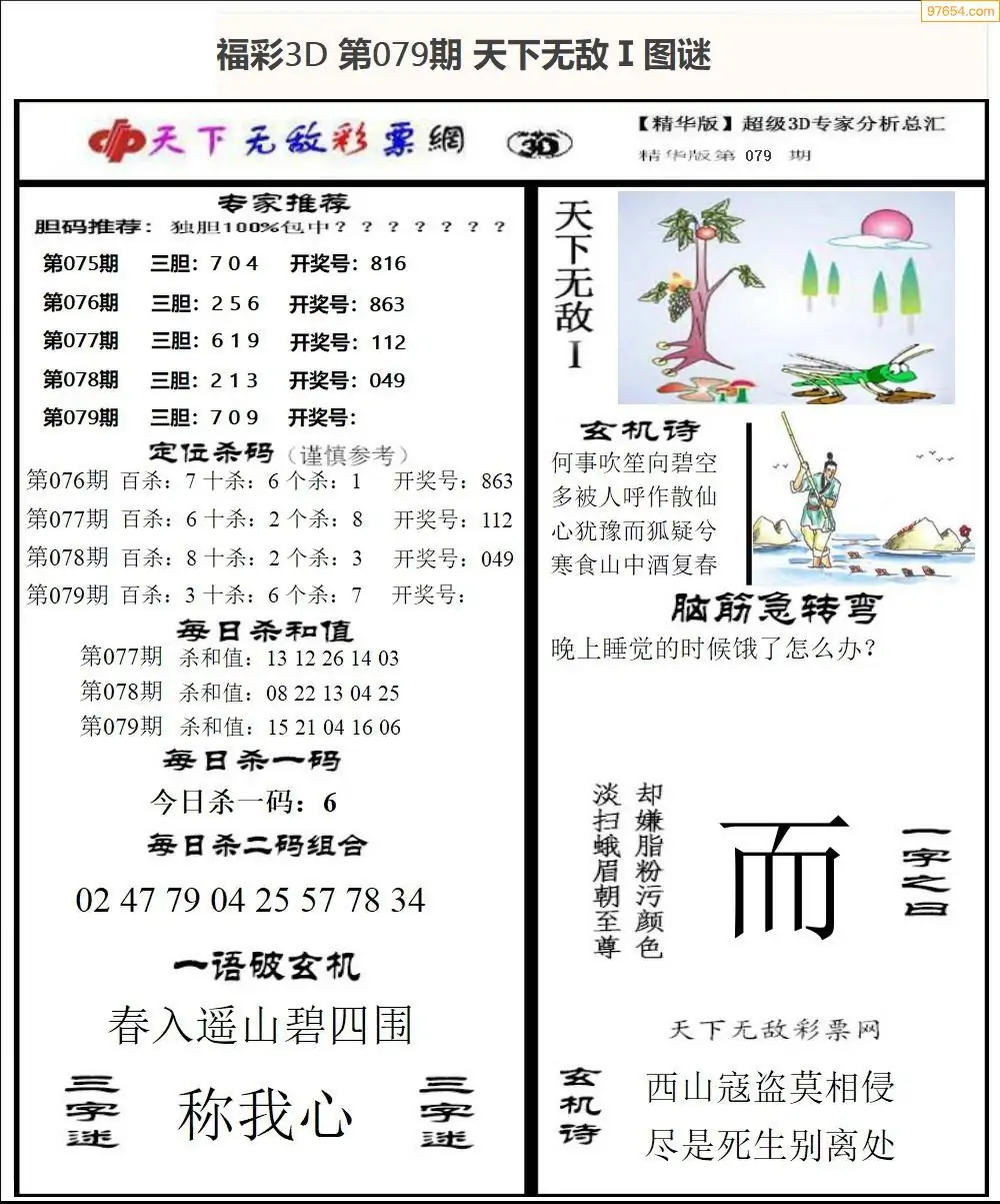 26年079期3d选号彩报图谜画谜