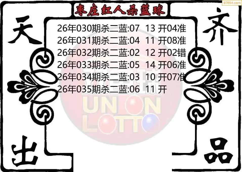 26年双色球035期枣庄红人杀二蓝图迷