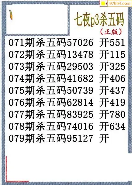 26年079期七夜今期排列3杀码图谜