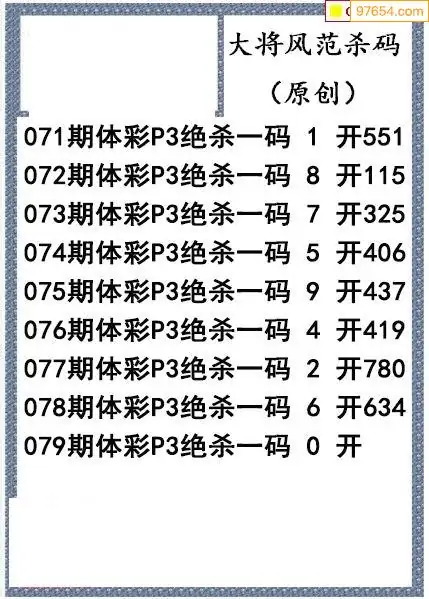 26年079期大将风范p3杀码体彩图谜