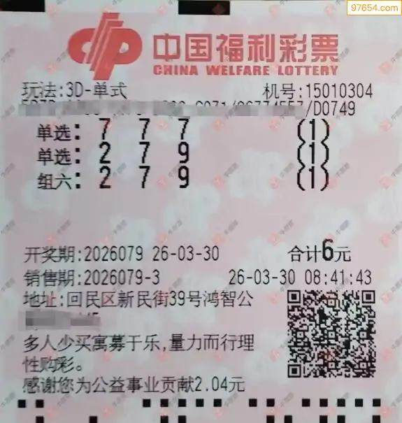 26079期福彩3d今天彩民晒票