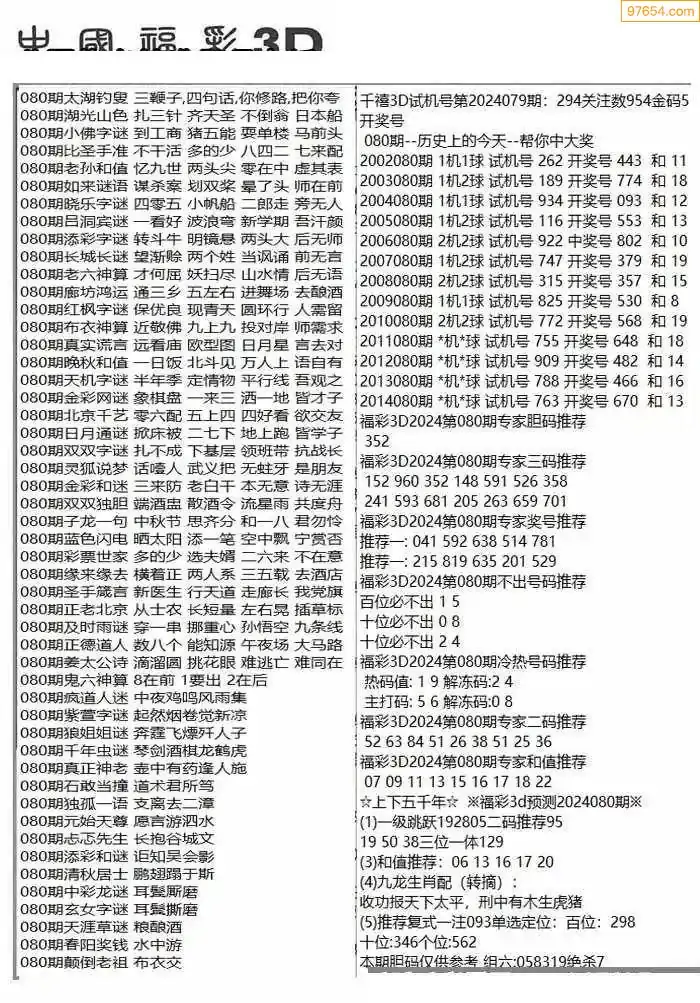 26年080期3D各板块资料整合汇总