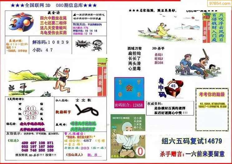 福彩3D080期天牛彩吧套图整合总汇