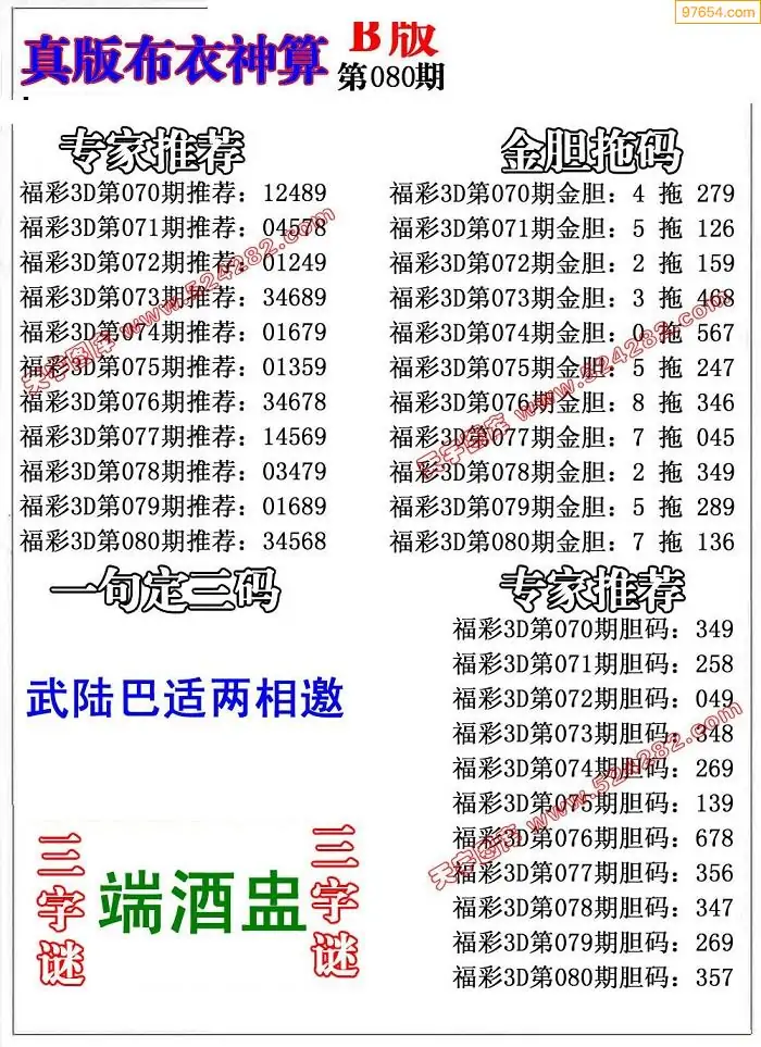 福彩080期3d真精华布衣+布衣早报(转载)