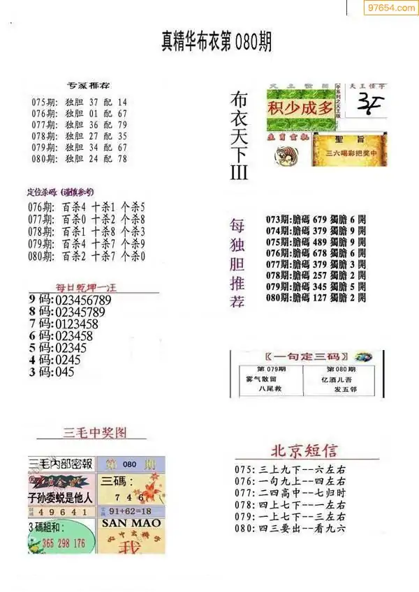 (2)26年080期本期3d图迷汇总_福彩3D图谜总汇图