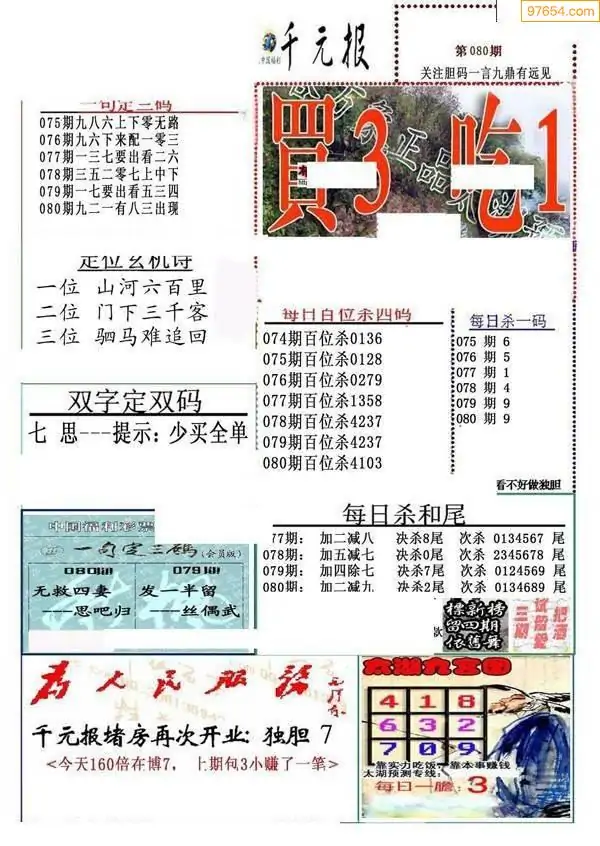 (1)26年080期今日3d图谜总汇