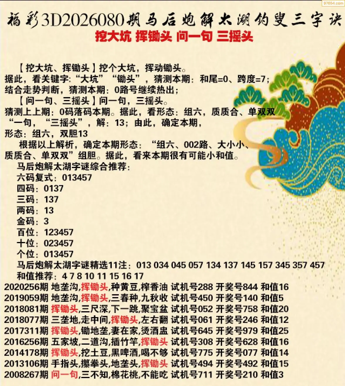 26080期福彩3d太湖钓叟三字诀历史汇总