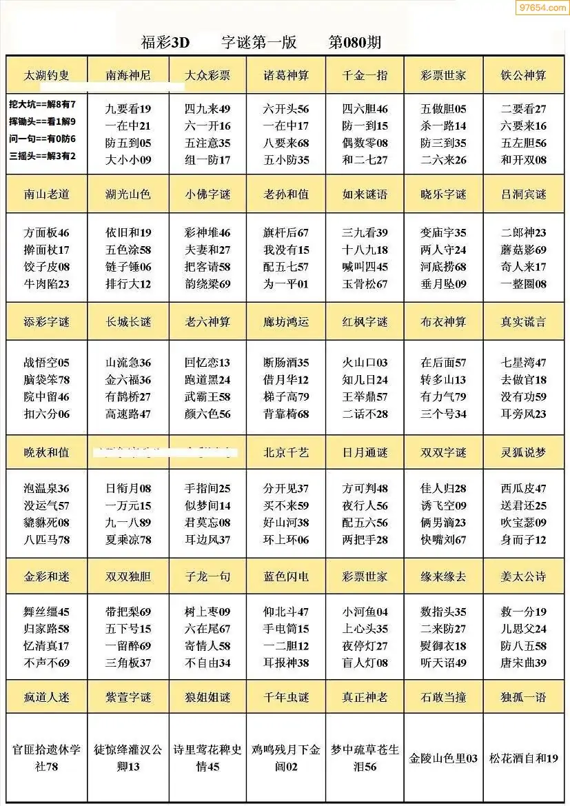 080期3D牛彩预测报+彩吧字谜报
