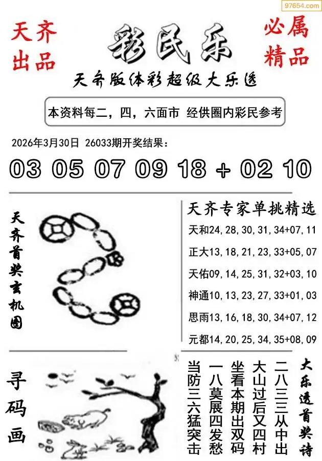 体彩大乐透2026年033期大飞10+3推荐