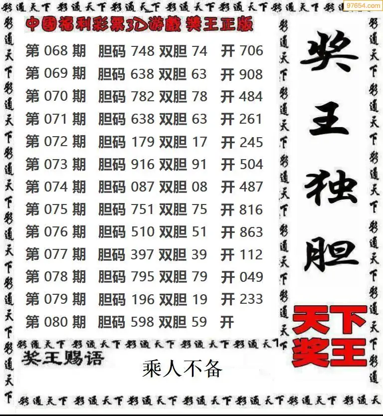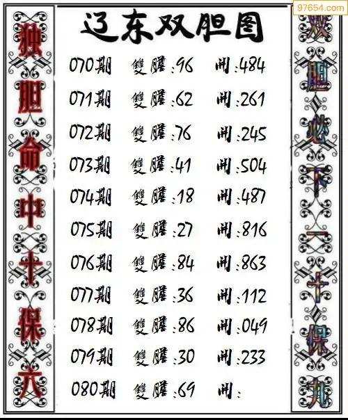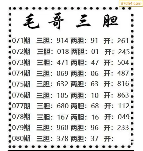 080期97654本站收集胆码出号预测