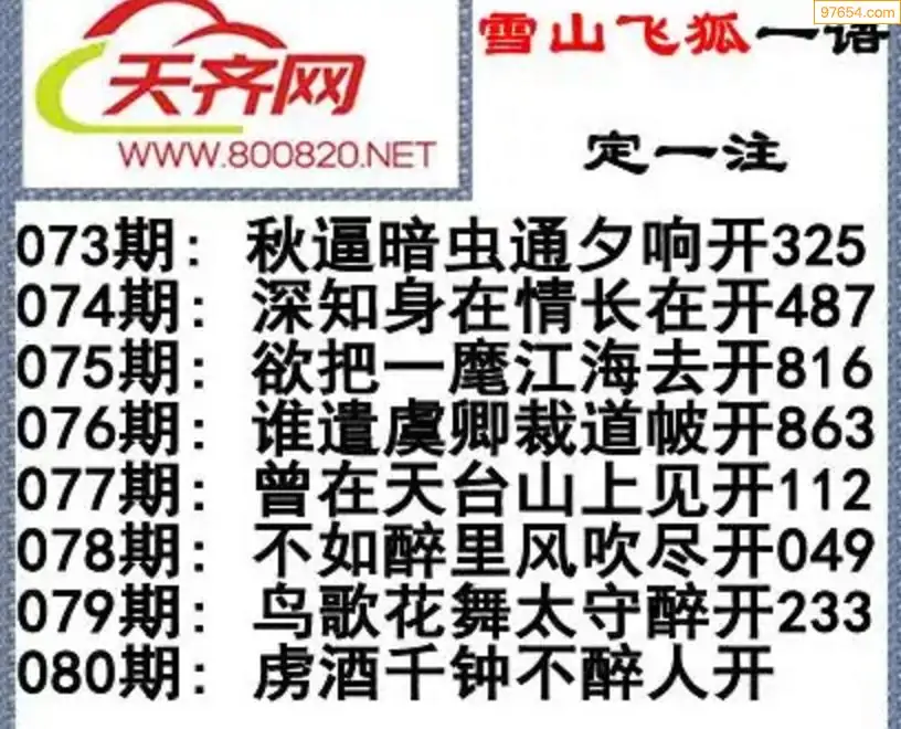 福彩3d26年080期字谜传说一句定三码