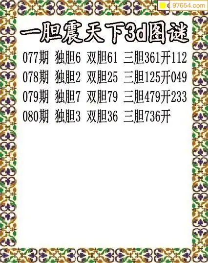 2026080期彩彩网3d原创图迷搜集(天中整理)