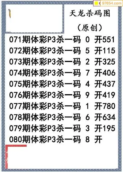 26年080期天龙体彩P3杀码图谜