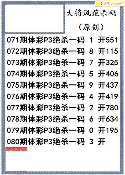 26年080期大将风范p3杀码体彩图谜