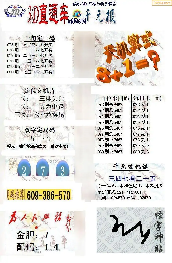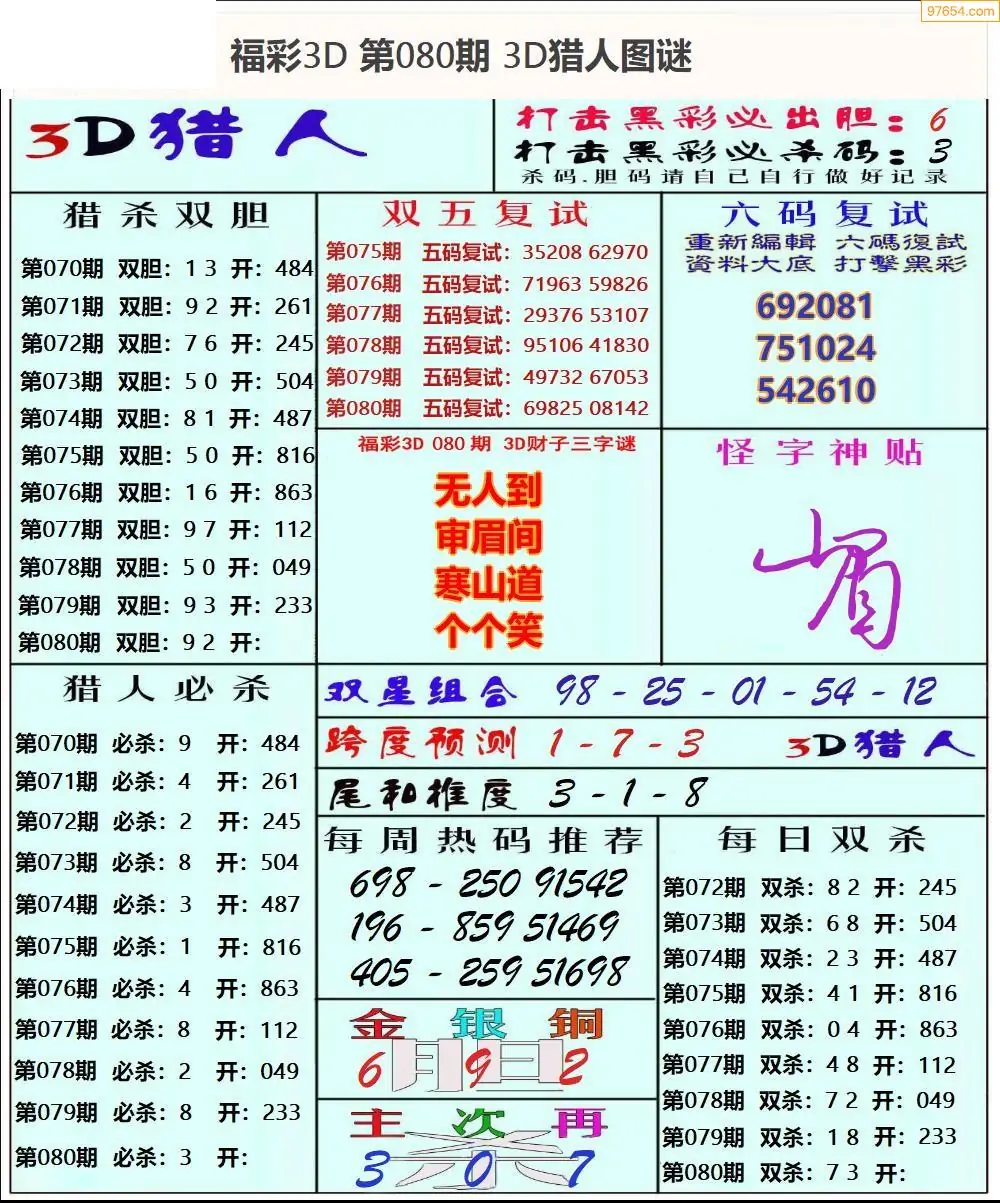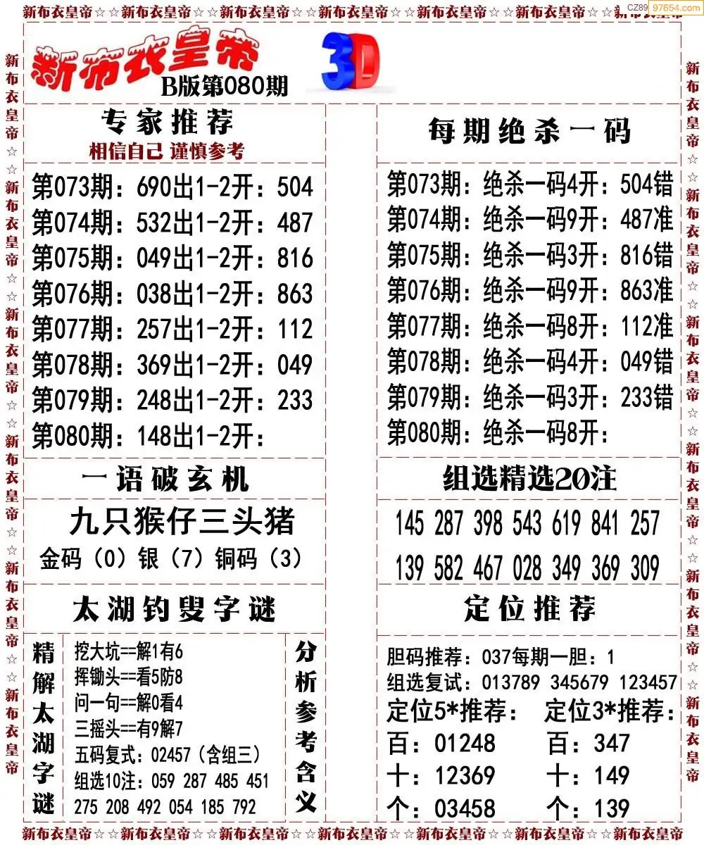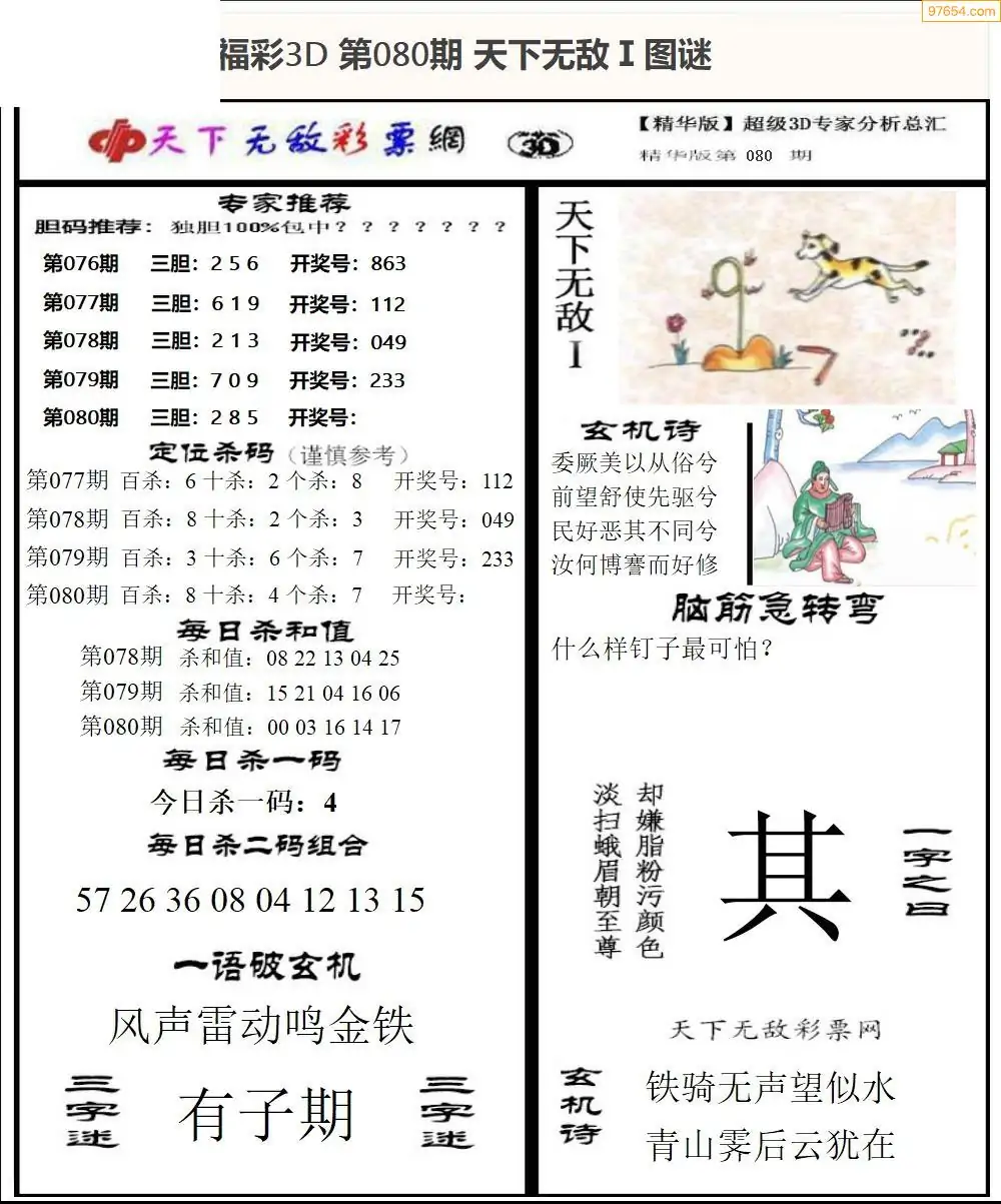 (3)2026080期3D预测总汇全图_福彩3d图谜字谜总汇