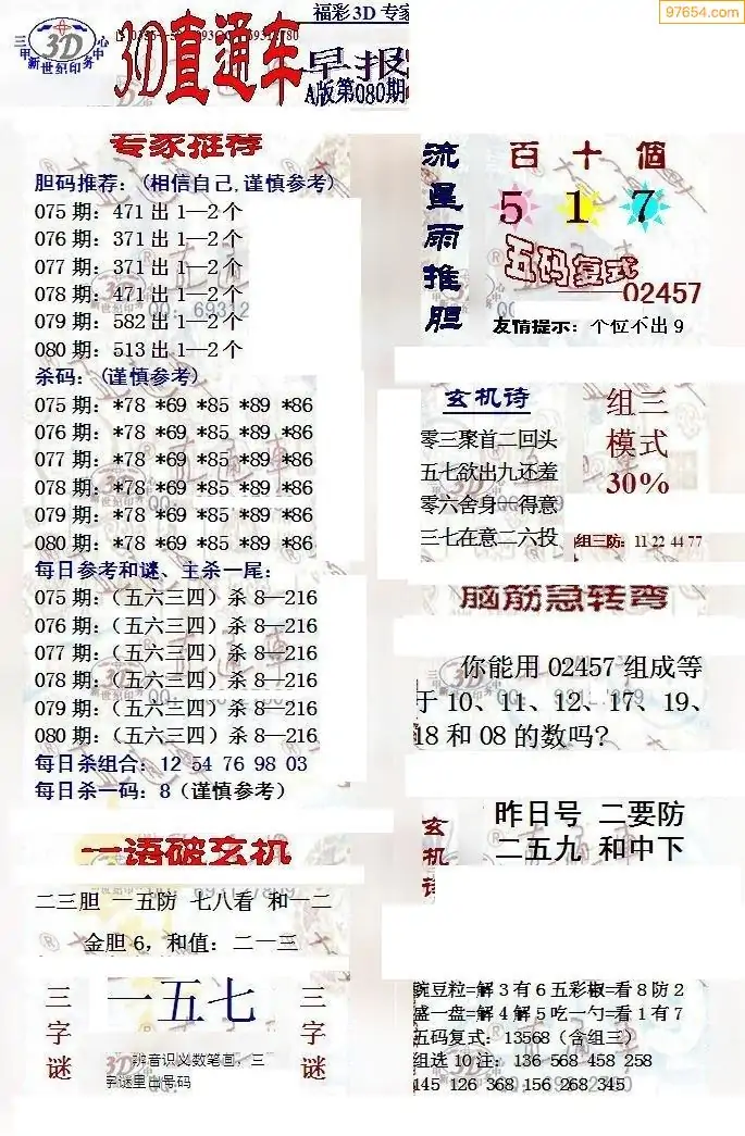 (8)26年080期今日3d各类彩报汇总