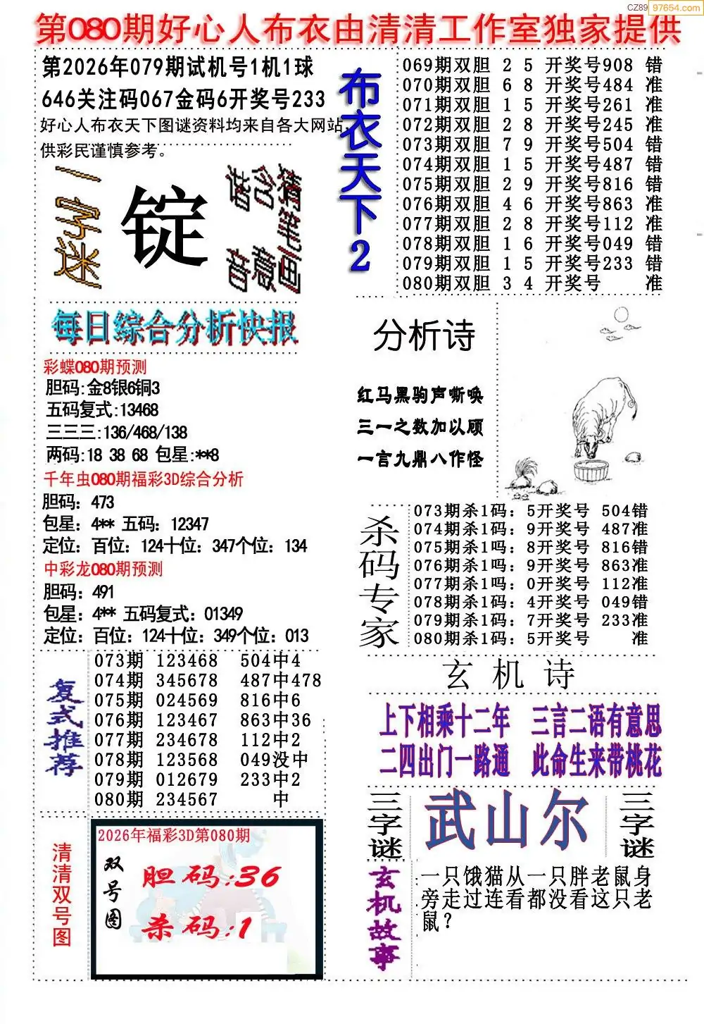 (2)26年080期本期3d图迷汇总_福彩3D图谜总汇图