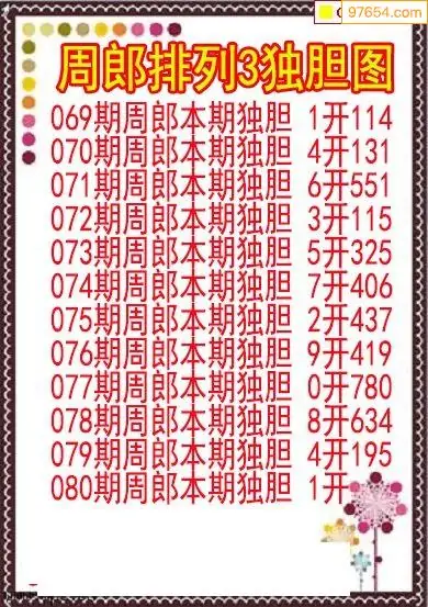 26080期排列3周郎本期独胆图