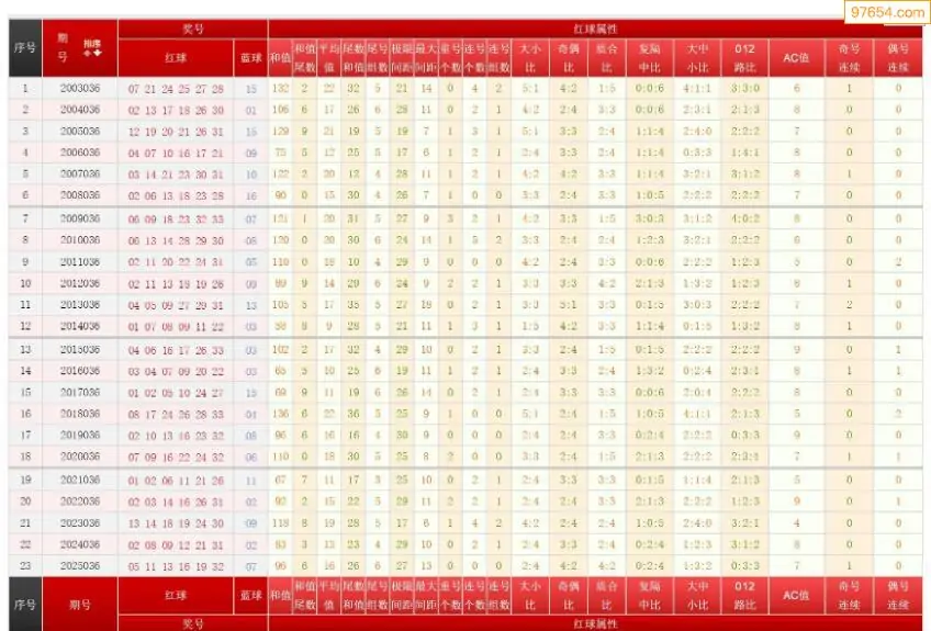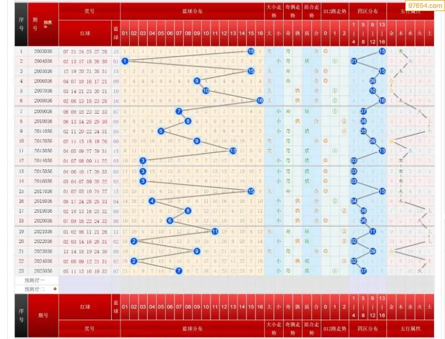 036期双色球历史同期图表+走势图