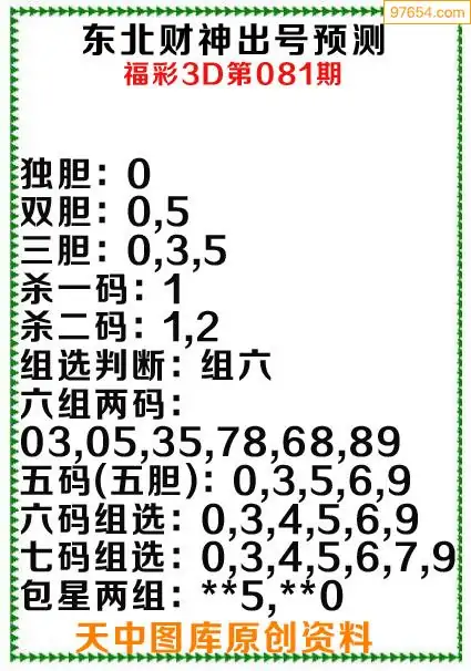 3d原创081期东北财神预测