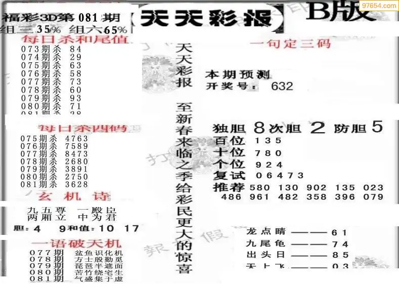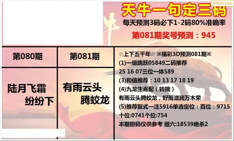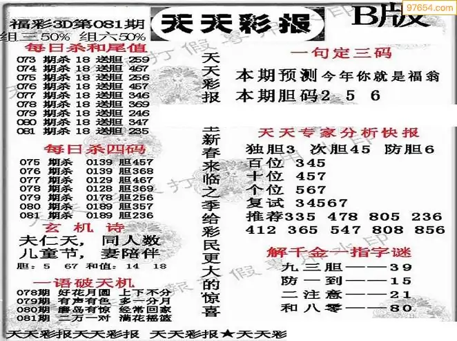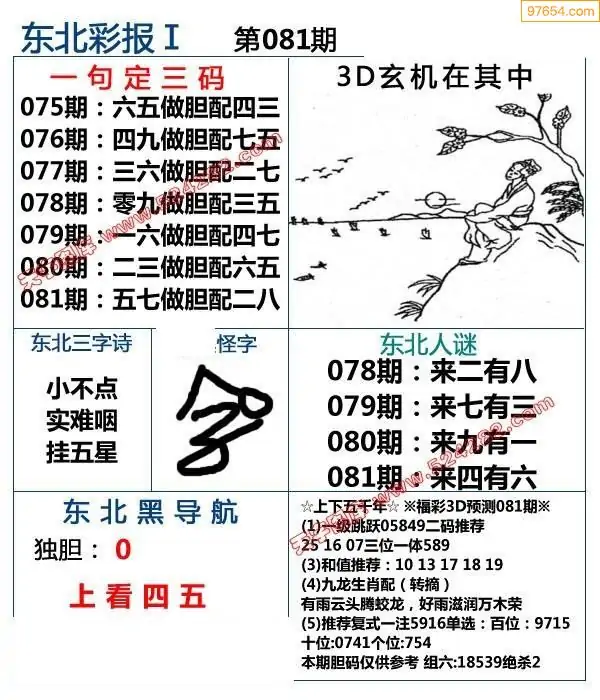 福彩3D081期天牛彩吧套图整合总汇