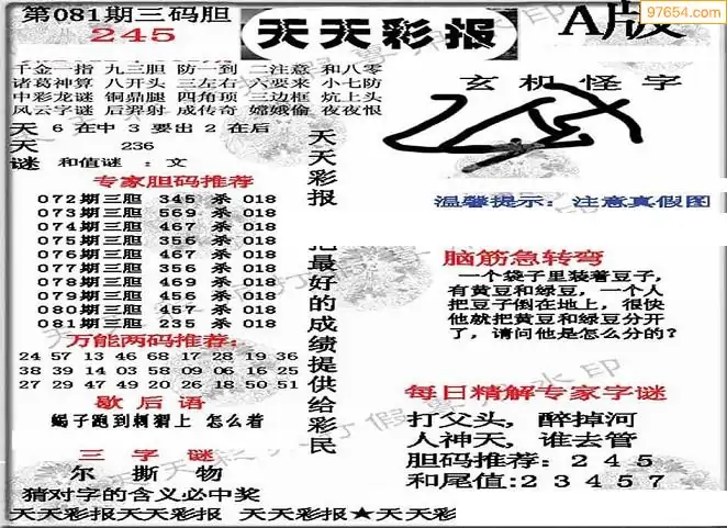 3d福彩081期马里奥两版彩报