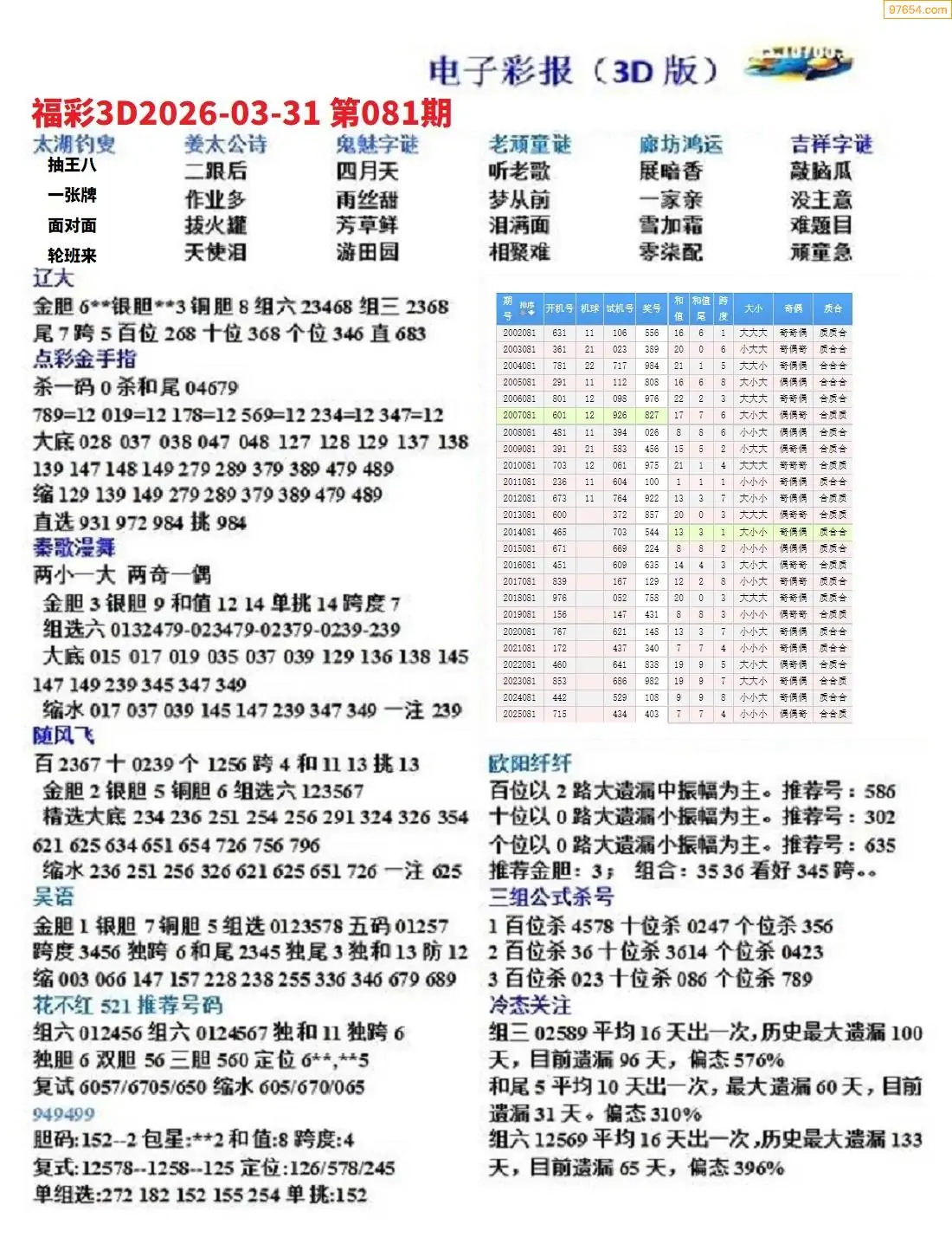 26年081期3D各板块资料整合汇总