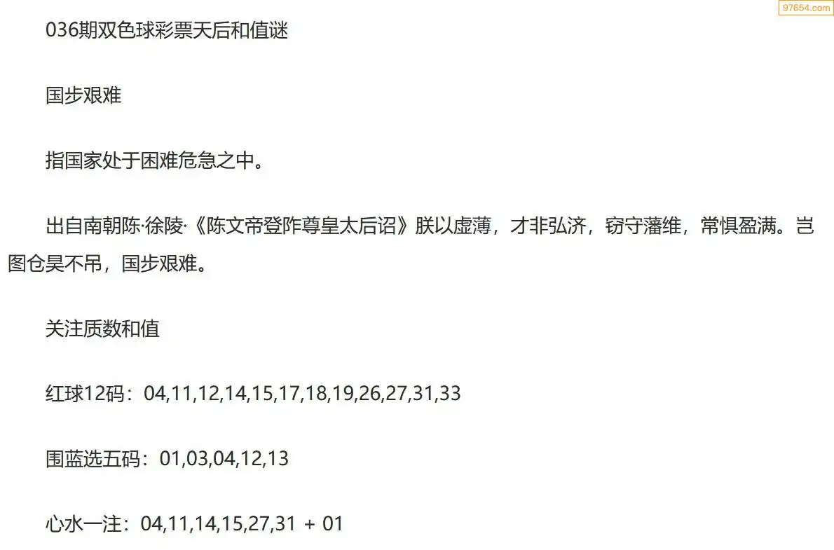彩票天后双色球26年036期今日和值谜