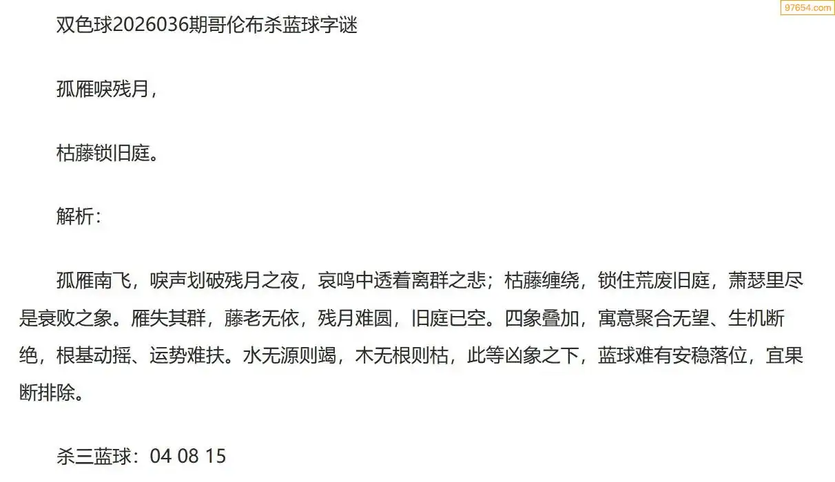 036期牛彩双色球字迷诗迷汇总(天中整理)