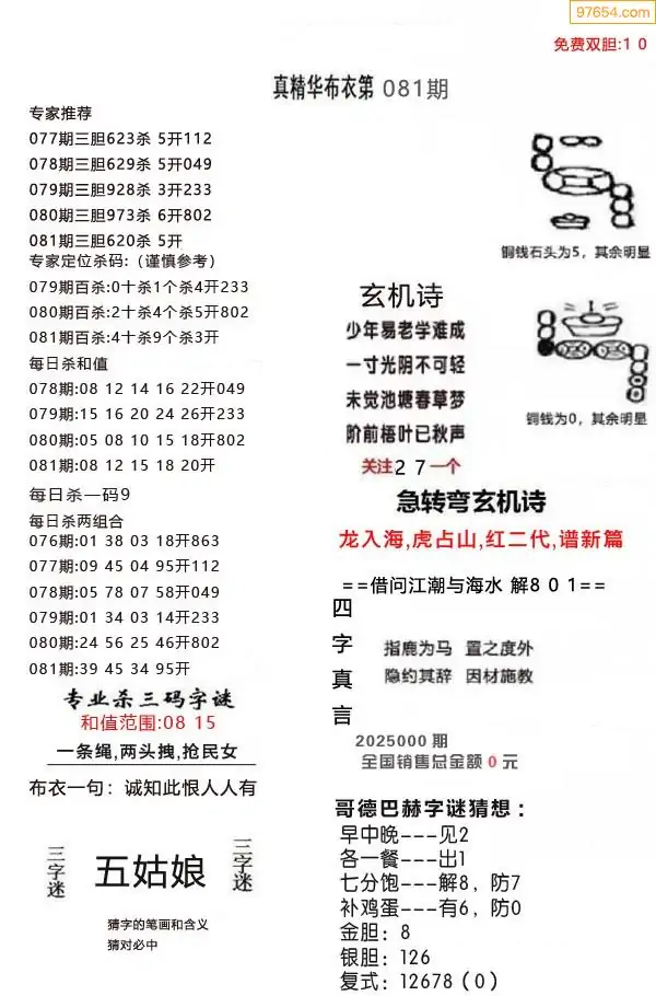 081期真版布衣神算专家推荐