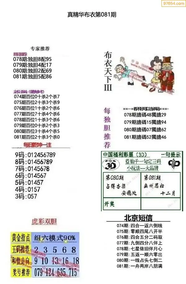 福彩081期3d真精华布衣+布衣早报(转载)