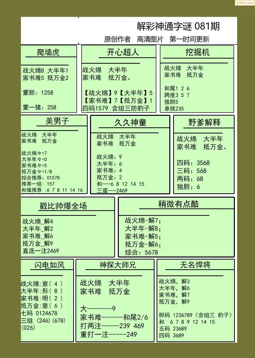 (3)2026080期3D预测总汇全图_福彩3d图谜字谜总汇