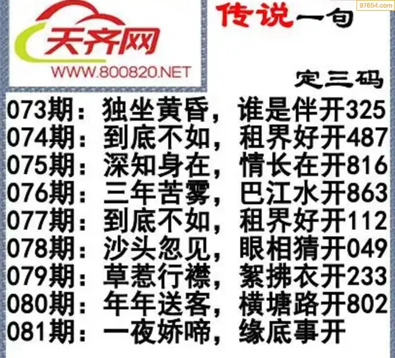福彩3d26年081期字谜传说一句定三码