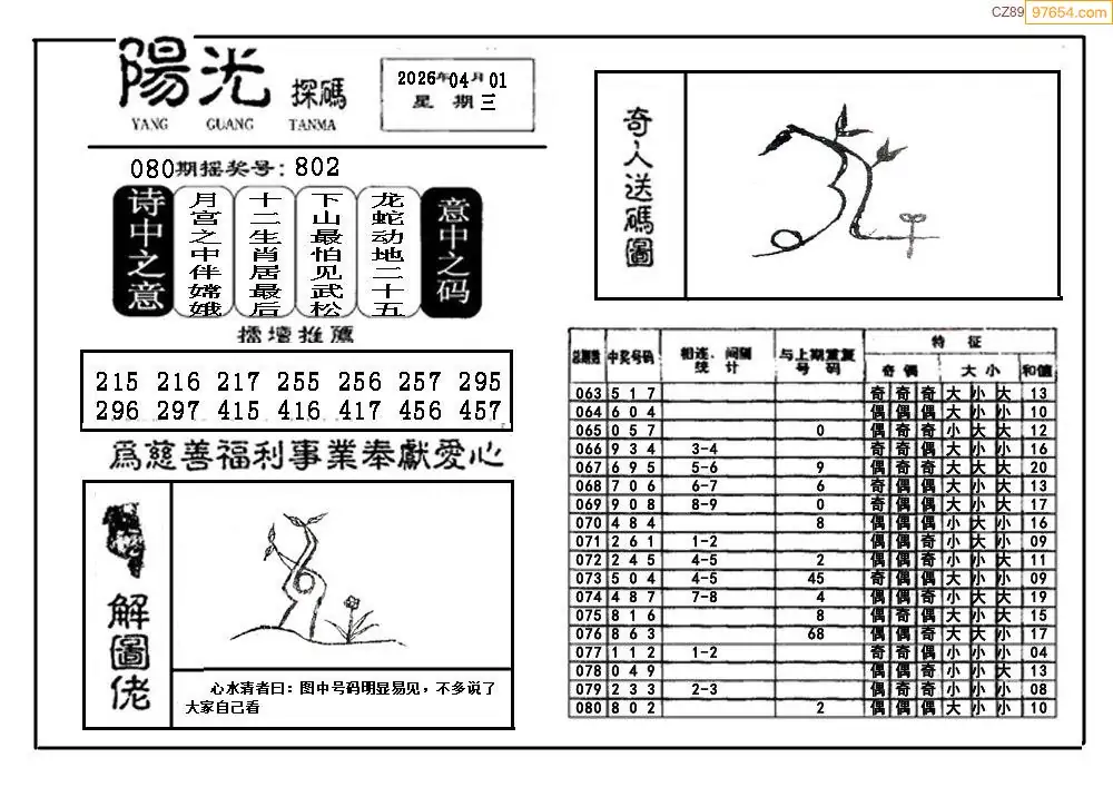 26081期福彩3D阳光探码图