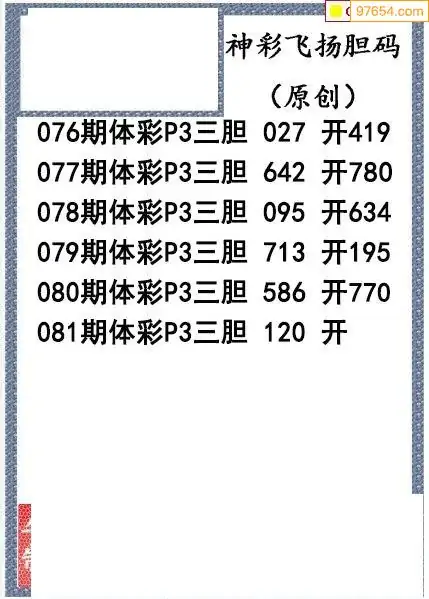 26081期神彩飞扬体彩P3三胆图谜