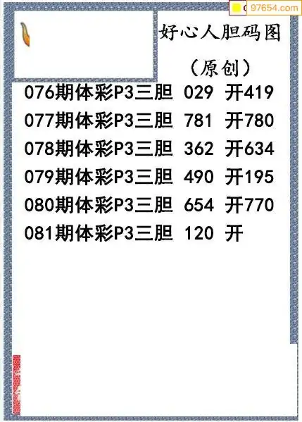 26081期好心人送胆排列三图谜
