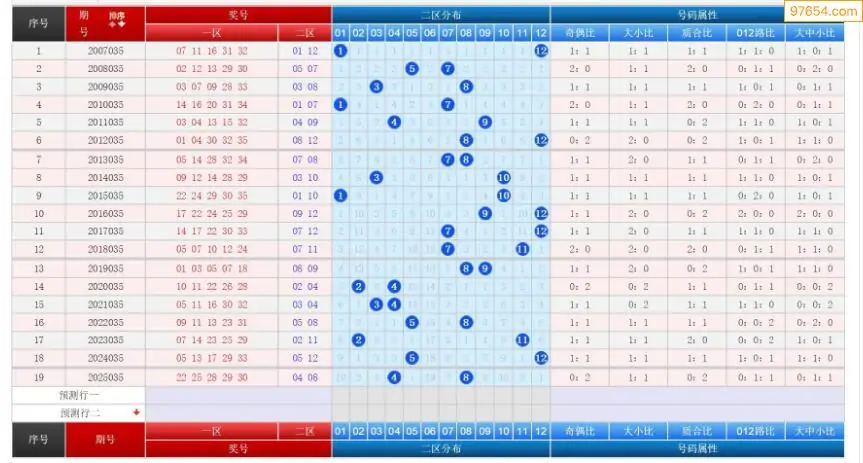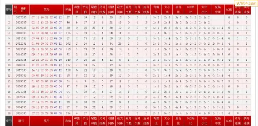 035期大乐透历史同期图表+走势图