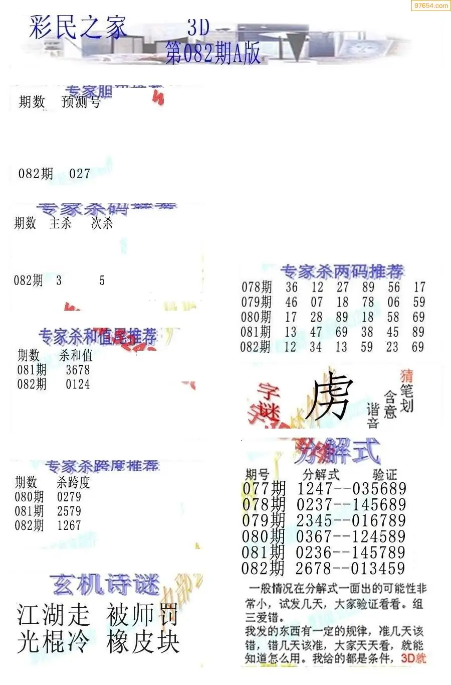 26082期3D彩民各类资料A版