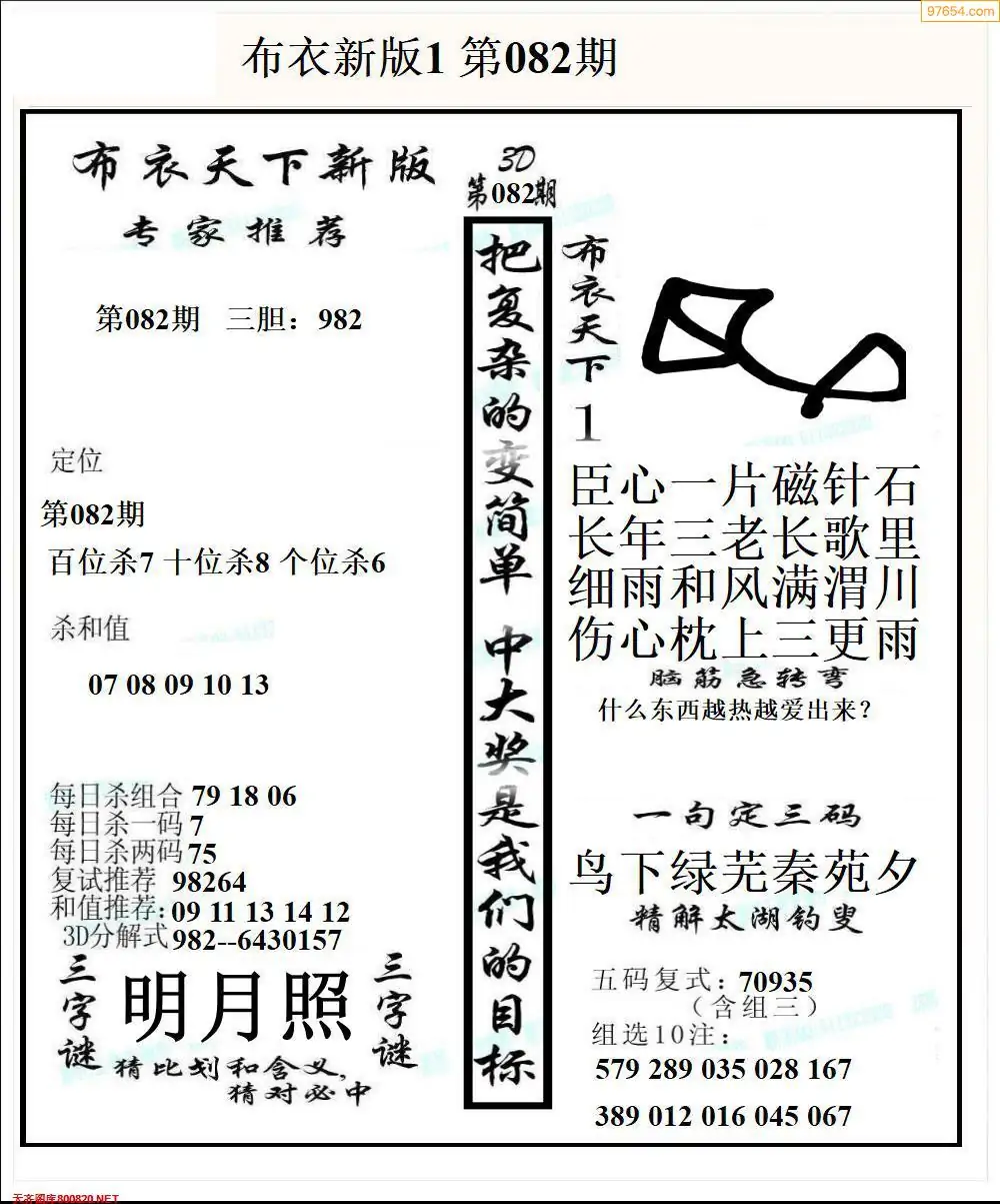 福彩082期3d真精华布衣+布衣早报(转载)